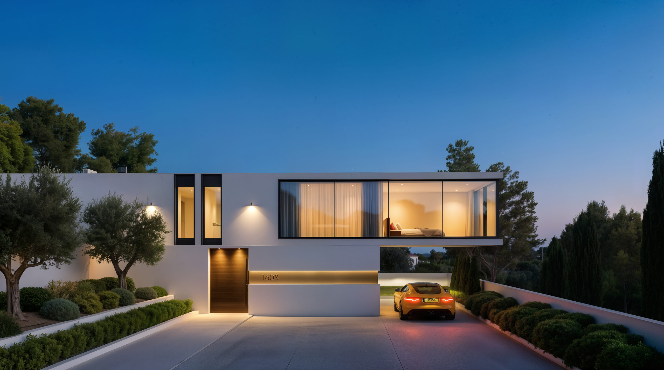 Two lighting scenarios were developed to demonstrate different atmospheres of the project. The daytime scene focuses on the clarity of architectural volumes and landscape integration, while the evening visualization emphasizes warm interior lighting and the inviting atmosphere of the residence.